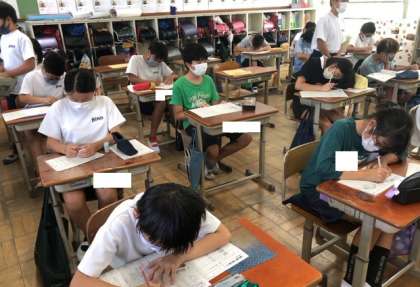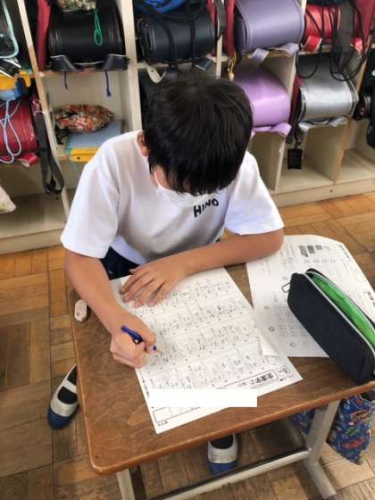 漢字テストに向けて,復習しています。たくさん漢字が書けると自信につながります。まだ覚えきれていない漢字は何度も書いて練習していました。