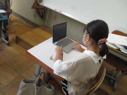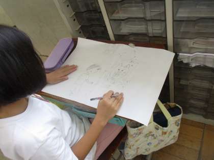 タブレットを活用して資料を調べながら下絵を描くなど,よい姿勢で学習に取り組むことができていました。