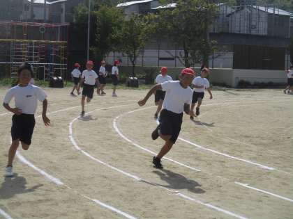 体育参観日に向けて,100m走に取り組んでいました。先生の話を聞いて,取り組み方や走り方を工夫しながら学習していました。