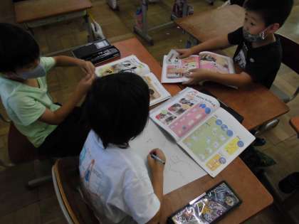 それぞれのグループで、設計図を考えたり、どんな材料がいるかを考えたりしました。