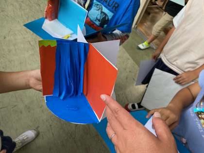 くるくるランドを立てて,実際に組み立ています。それぞれ回る動きを利用して,場面を決めて作っています。完成が楽しみです♪