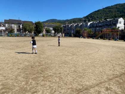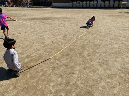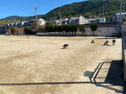 運動場に出て,グループで相談しながら,半径5メートルの円を描くことに取り組みました。定規をつなげたり,メジャーを使ったり・・・すべての班が上手に描くことができました♪