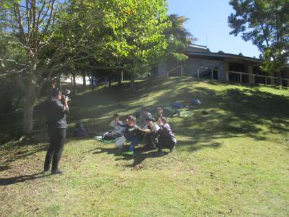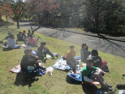 芝生の上でお弁当を食べました。きれいな景色の中で食べるお弁当はおいしいですね。