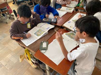 絵を見ながらグループで想像を膨らませています。一人一人どんなストーリーを書くのか楽しみですね♪