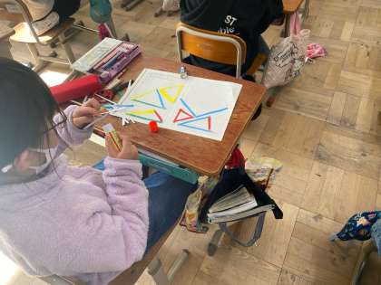 色ぼうを使って,いろいろな種類の三角形を作っていきました。作っているとある決まりを見つけることができました♪