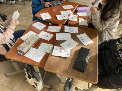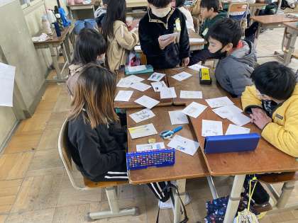 自分たちで作ったもので音訓かるた大会を行いました。大盛り上がりとなっていました。