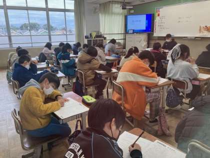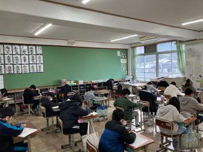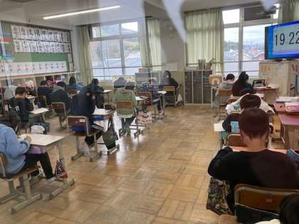 どのクラスも緊張感をもってテストに取り組んでいました。明日もがんばりましょう。