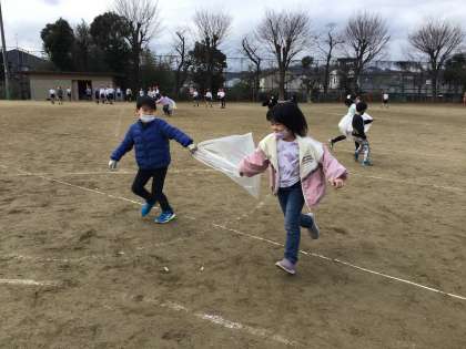 たくさん走って袋がぱんぱんになるまで風を集めました。