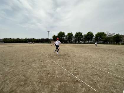 4年生になって初めての50メートル走を行いました。激走の1時間でした。