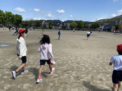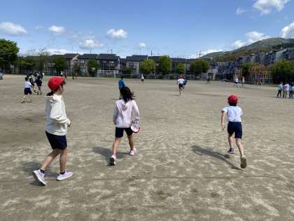 中間休みもみんな元気に遊んでいます。今日はどろじゅんに決まりました。警察が元気よく追いかけに行きます!