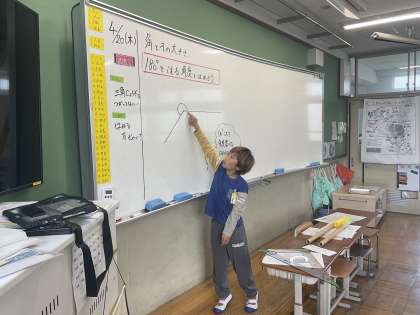 今日は分度器を使って180°を超える角度を測りました。分度器を駆使して上手に測ることができました。