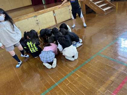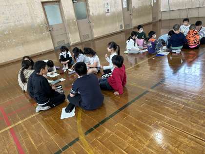 来週にある一年生をむかえる会に向けて練習しています。各チームに分かれてどんな出し物をすればいいか話をしていました。