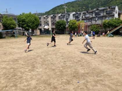 昼休みには,学年全員で鬼ごっこをしました。みんなで遊ぶと楽しさもアップしますね。これからもこんな機会を増やしていきたいです。