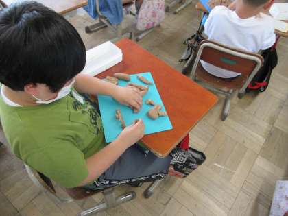 用具を使ってねんどの形を変え、思いつくものをつくりました。