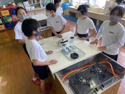実習まではあまり玄米茶を飲んだことがない子が多く,玄米茶と聞いて気を落としている子もいましたが,いざ飲んでみると,「美味しい」という声がたくさん聞こえました。