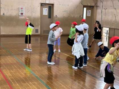 体育館でリレーあそびをしました。ルールを聞き,いざ挑戦!!走った後に,どうすれば速く走れるか,チームで話し合う姿がステキでした。みんな,一生懸命頑張っていました。