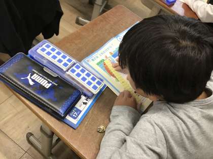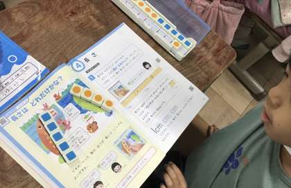 ブロックが何個分かで表したり、紙のものさしを使ってみたり…