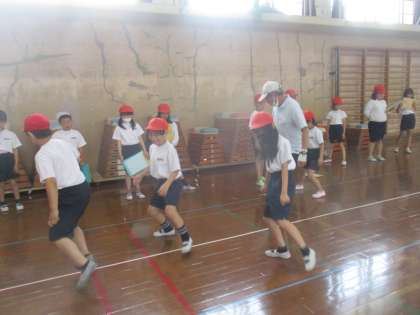 反復横跳びをしていました。互いに記録をし合いながら、計測していました。