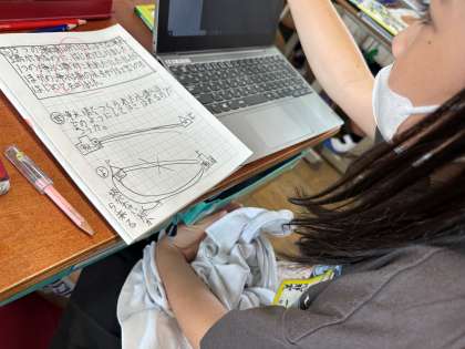 高いところにどうやって水を運ぶのかを図を使って考えました。色々な考えが出ていました。