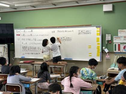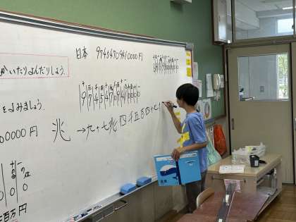 今日は十憶をこえる数について学習しました。位をしっかりとったり,漢字に直したりするのをがんばりました!