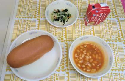 じっくりと煮こまれた大豆はほくほくで甘みもあり,トマトの味がよく絡んでパンによく合っていました。