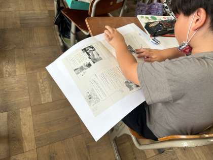 どうしてお父さんはコスモスの花を渡したのか,全文シートを見ながら,話し合っていました。両クラス大盛り上がりでした♪