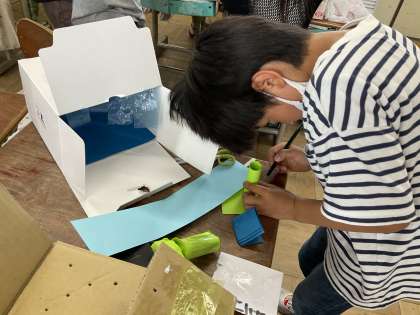 図画工作科では箱の中をのぞいてみると素敵な世界が広がる作品作りに取り組んでいます。もうすぐ完成!楽しみです!