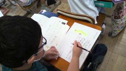 「〜みたいな」「〜ぐらいの」等の表現や「気づきました。」「見つけました」等の観察文で使いたい言葉を入れようと頑張っていました。