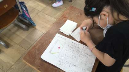 観察記録文を友達と読み合いました。「かんさつ名人だ!」と感じたところや「いい書き方だな。」と思ったところを書いて,友達に伝えました。いいところを見つけてもらえて,嬉しそうでした。