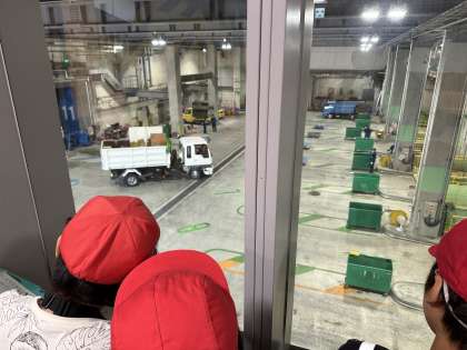 ゴミをのせたトラックがどんどんプラットホームに集められてきました。クレーンの大きさにも驚きです♪