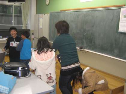 子どもたちは,豆まきのことを、なんとなくは知っているようで「鬼は外っていうやな。」「この豆おいしいよ。」と言っていました。でも「鬼って何?」ときくと「Devil?」「Monster?」という答え。そこで、鬼が病気や悪いことのシンボルであることと「福」について説明し「鬼は外。福は内。」のかけ声を教えました。