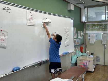 四つの点から四角形を作り,いろいろな四角形を見比べました。共通点を見つけて3つのグループに分ける活動をとても頑張っていました!
