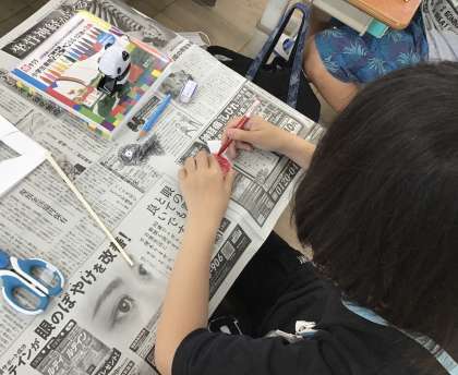 国語「スイミー」の学習のために,図工で表がスイミー,裏が赤い魚になるものを画用紙等で作りました。