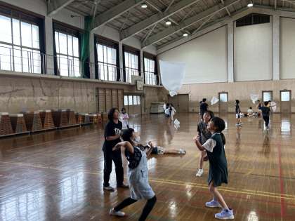 袋にとじこめた空気で遊んで,その感触や様子を観察しました。