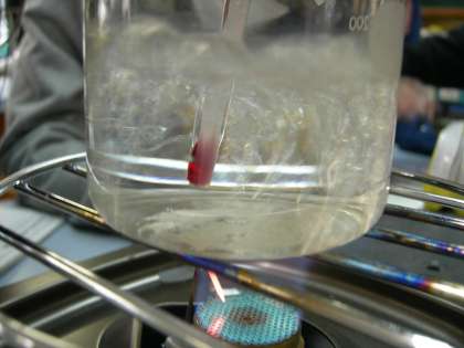 途中から激しく沸騰し,水が減ってきました。温度計は97〜98度までは上がったのにそれ以上は上がりませんでした。