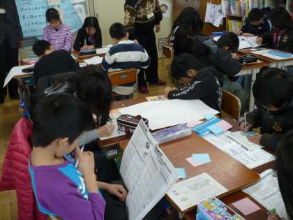 冬休みにエコに取り組めたことをグループで話し合いながら,今後の目標について話し合いました。
