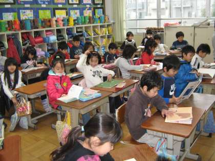 毎朝8時35分のチャイムがなると子どもたちは,静かに読書を始めます。選んでいる本も,1年生のころは図鑑や絵本が多かったのですが,最近は長い物語を好んでいる人が増えてきました。たくさんの本と出会うことで,言葉をおぼえたり知らなかったことを知ったりするきっかけになります。