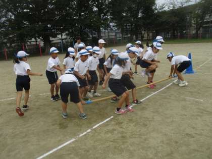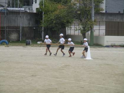 運動会前、最後の練習をしていました。仲間で声をかけ合い、応援し合いながら、「台風の目」をしていました。