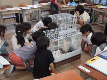 子どもたちは、「かわいい!」と、とてもうれしそうに、やさしくなでていました。