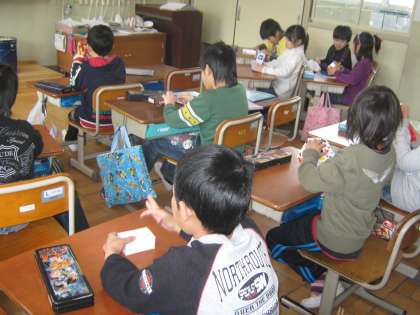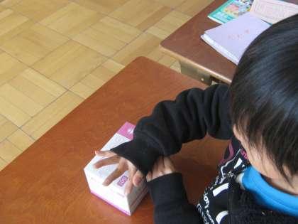 いろいろなはこを集めて,はこの形を調べてみました。じっくりとはこを見つめたりさわったりして,面があることや頂点があることに気付きました。