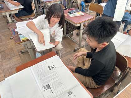 自分たちで疑問に思ったことをもとに,学習を進めています。根拠を明確にして,しっかり文を指さしながら説明していました。