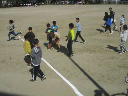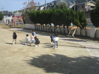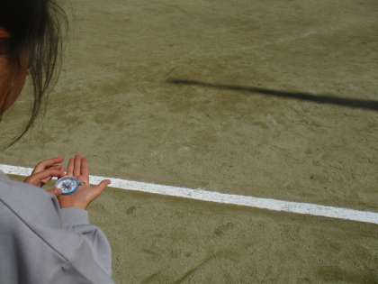 学校にあるポールの影をラインパウダーでなぞり、しばらくしてから観察に来ていました。「動いてる〜!」と元気な声が聞こえていました。