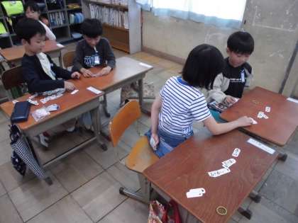 授業では、たしざんカード(2)を使って、友だちと楽しみながら練習しました。