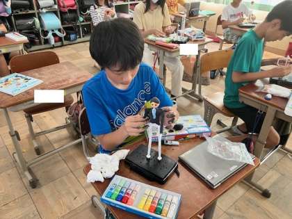 図画工作の学習では,20年後の自分の姿を想像して,立体作品に仕上げています。
