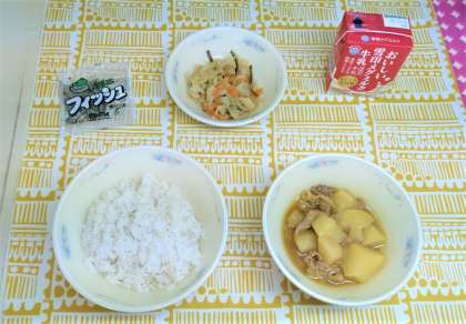 京都市の給食では肉じゃが、肉じゃが(カレー味)、肉じゃが(ピリからみそ味)と三種類の肉じゃがが登場します。