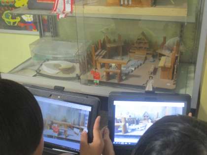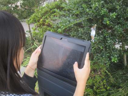 自分の写真を学校のいろいろなところに置いて写真を撮るという図画工作の学習です。とても楽しそうに活動していました。
