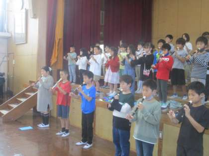 体育館で練習をしていました。3年生から学習が始まったリコーダー。おうちの人たちにいい発表ができるといいですね。