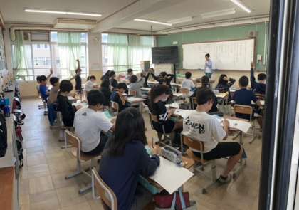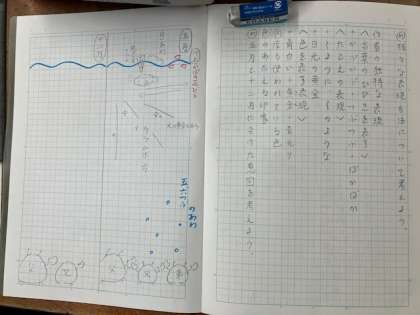 国語の学習では宮沢賢治作の「やまなし」を読み進めています。作品の世界を捉えるため,場面ごとに登場人物の様子や心情がどのように変化したのか考えました。