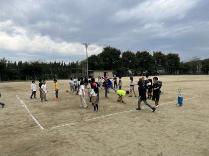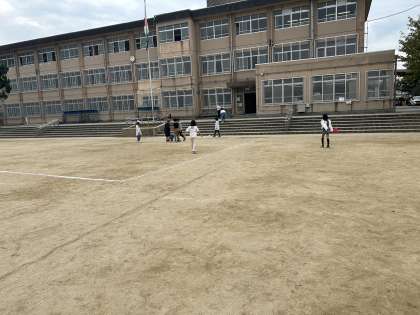 昨日の1平方メートルに引き続き,今日は1aを運動場にかきました!1平方メートルには男子・女子がギリギリ全員乗れる大きさでしたが,1aは・・・。大きさを大体つかんだかな?