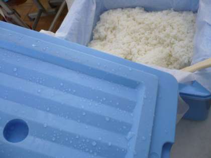 その日の給食のとき,「あ!先生!ご飯のふたにも蒸発した水がついてる!」と教えてくれました。